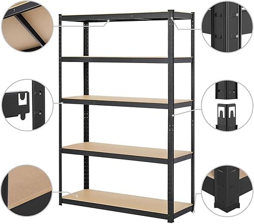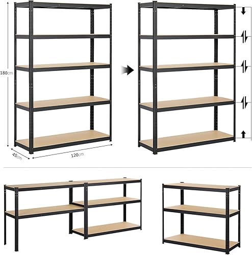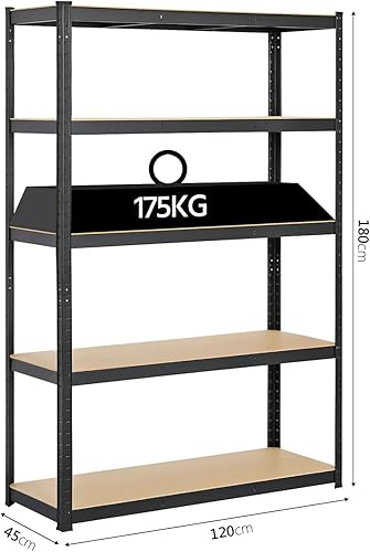 Scaffalattura in Metallo con 5 Ripiani 120 x 45 x 180 cm Scaffale da Garage in Metallo Massima Capacità di Carico 875 kg per Magazzino Negozio Nero