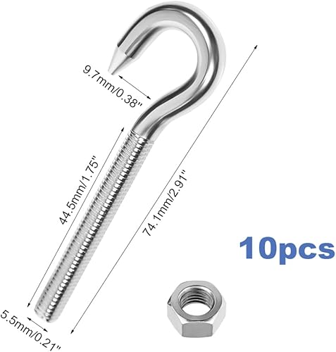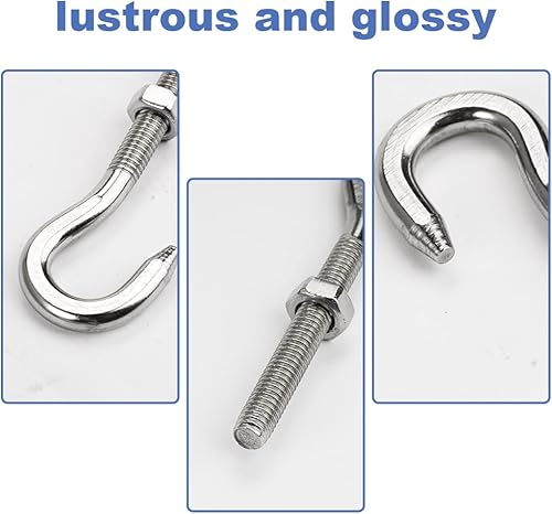 10 Pezzi M6 Ganci a Vite, 304 Ganci Avvitabili in Acciaio Inox, Ganci per Impieghi Pesanti per Appendere Oggetti Gancio da Soffitto o Parete, Ganci Inox Vite per Amache, Tende da Sole e Sedie Sospese