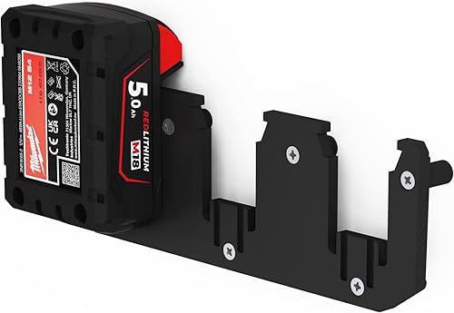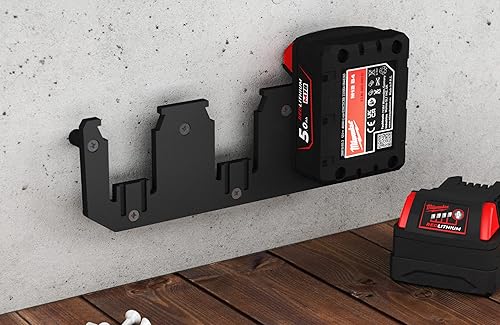 Supporto da parete a batteria adatto per batterie Milwaukee M18 / 18 V / supporto a batteria (3 batterie) con viti e tasselli [Made in Germany]