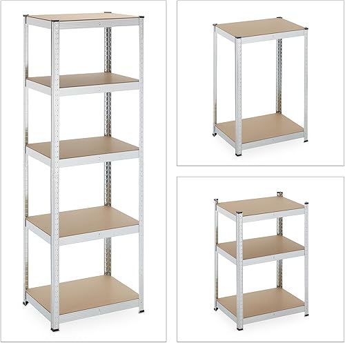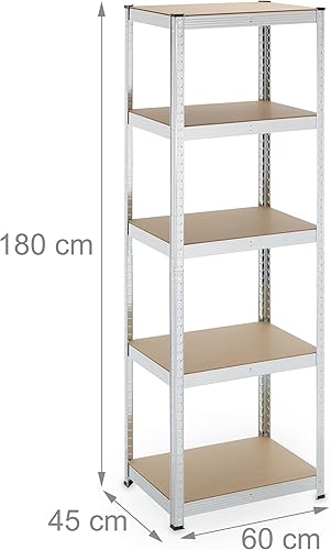 Relaxdays Scaffale in Acciaio Zincato, 180x60x45 cm, 5 Ripiani ad Alta Portata 500 kg, per Garage e Cantina, Argentato