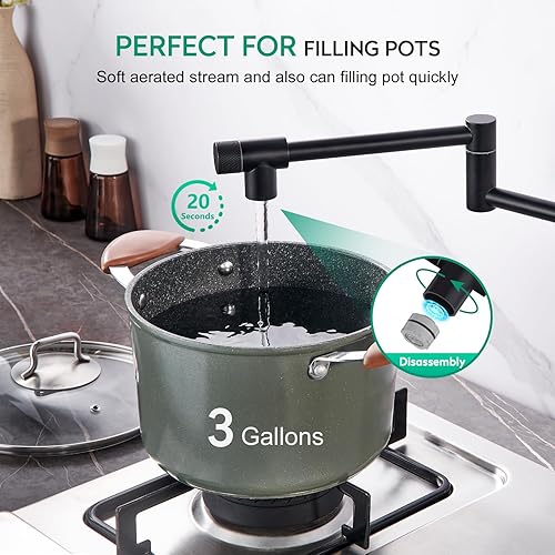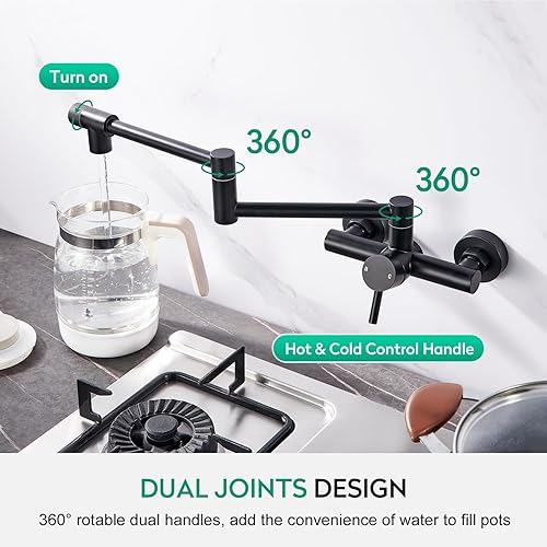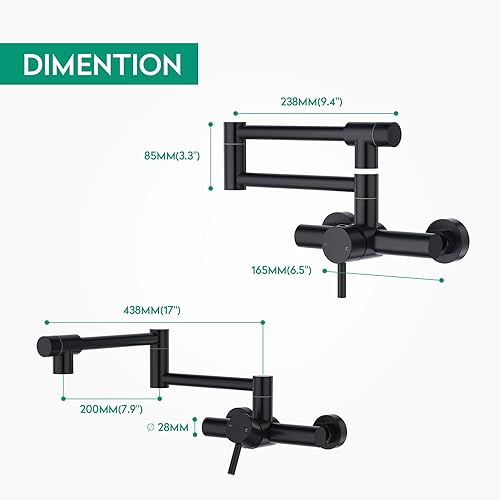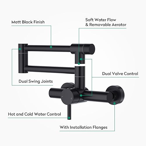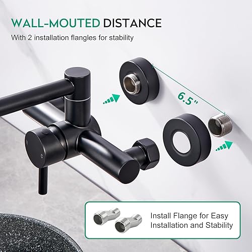 CREA Rubinetto Cucina da Parete,Rubinetto da Cucina a Muro con 2 Tipi di Getto,miscelatore da cucina, girevole a 360°,in acciaio inox,Da Parete Con Giunto doppio estensibile,Nero Opaco