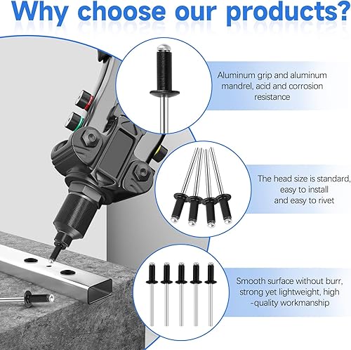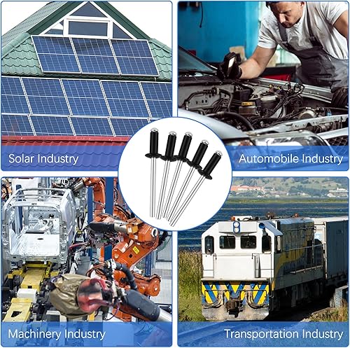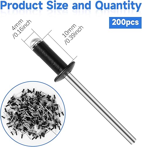 200 Pezzi Rivetti Alluminio, 4 mm X 10 mm Rivetti Ciechi Alluminio, Rivetti Alluminio Neri Rivette Lunghe, Rivetti a Strappo in Alluminio per Edifici, Navi, Auto e Mobili