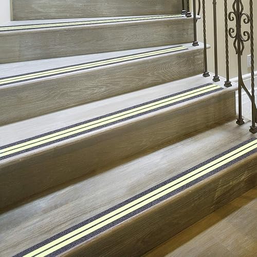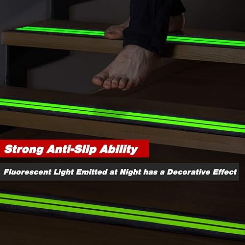 Nastro Anti Scivolo/Glow-in-dark da 5 x 60 cm – Premium 15 Strisce Pretagliate, Impugnatura Adesiva Antiscivolo a 80 Grana e Previene il Rischio di Scale o Altre Esigenze di Sicurezza (15 pezzi)