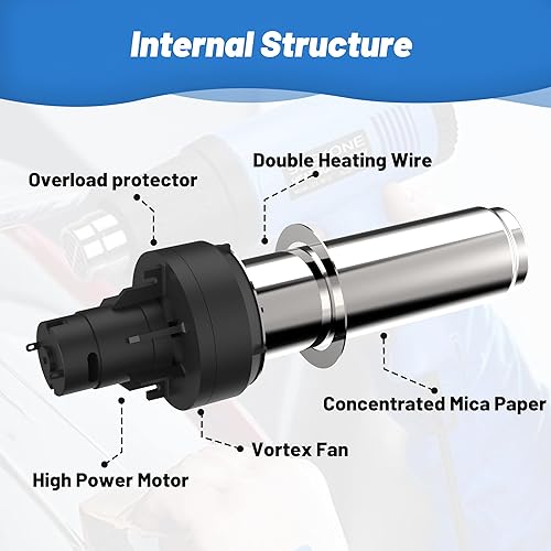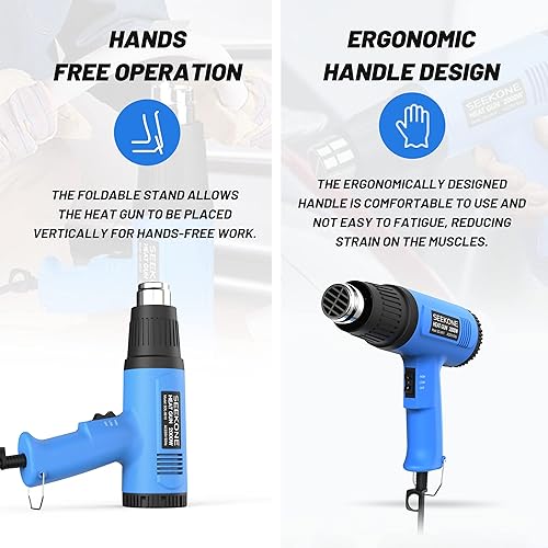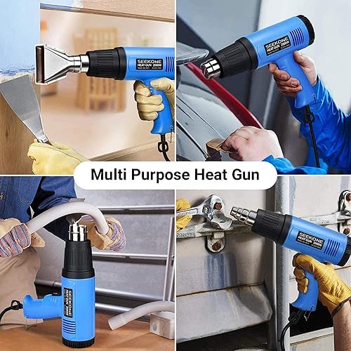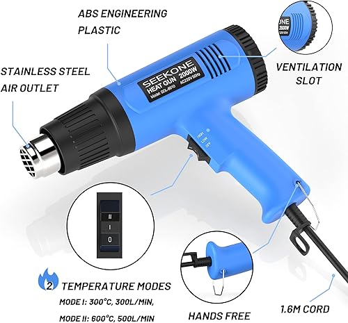 Pistola ad Aria Calda, SEEKONE Pistola Termica 2000W, 2 Temperatura (300°C/600°C) e 4 Ugelli, Nucleo Riscaldante in Ceramica, Protezione da Sovraccarico, per Rimuovere Vernice, Riscaldamento in PVC