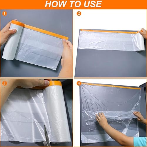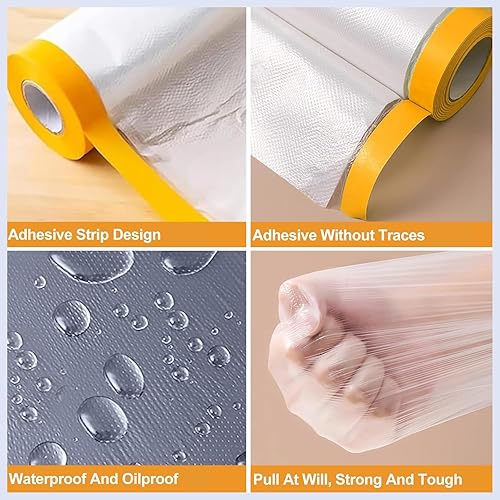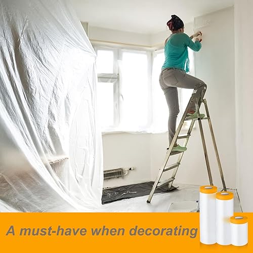 3 Rotoli Pellicola Adesiva per Mascheratura Teli Copritutto per Imbianchino Telo Protettivo per Pittura Film per Mascheratura con Nastro Adesivo Pellicola di Copertura, 55cm, 150cm, 270cm