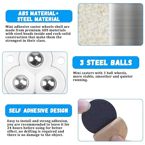 28 Pezzi Ruote per Mobili Autoadesive Ruote a Sfera in Acciaio per Mobili Piccole Ruote Girevoli Adesive Mini ruota universale autoadesiva 360°Ruote Autoadesive per Piccoli Mobili Scatola