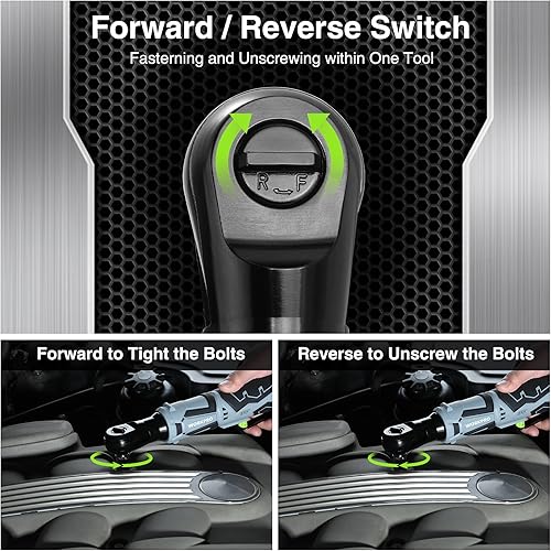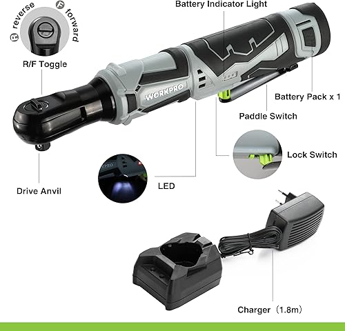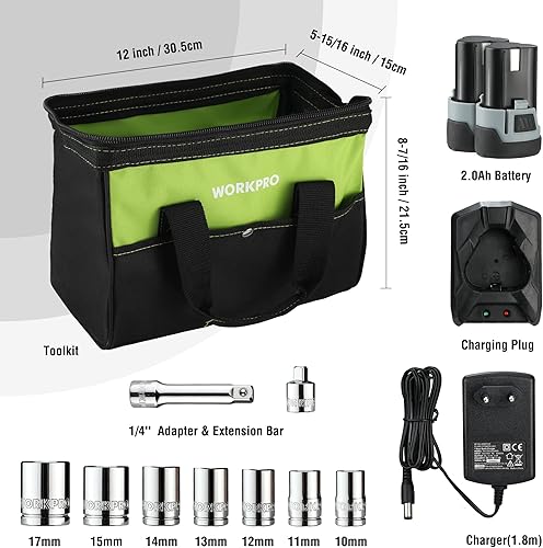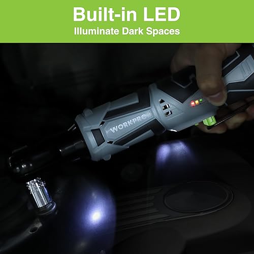 WORKPRO Chiave a Cricchetto Elettrica Senza Fili 12V, Chiave a Cricchetto a Batteria, 3/8', 55Nm, con 2 Batterie da 2,0Ah, 1 Caricabatterie Rapido, 1 Base di Ricarica e 9 Accessori per Bussola