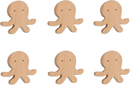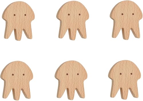 Pomoli Decorativi 6 Pezzi Medusa Balena Maniglia In Legno Per Bambini Porta Dell'Armadio Cassetto Maniglia In Legno Mobili Maniglia A Foro Singolo Polpo