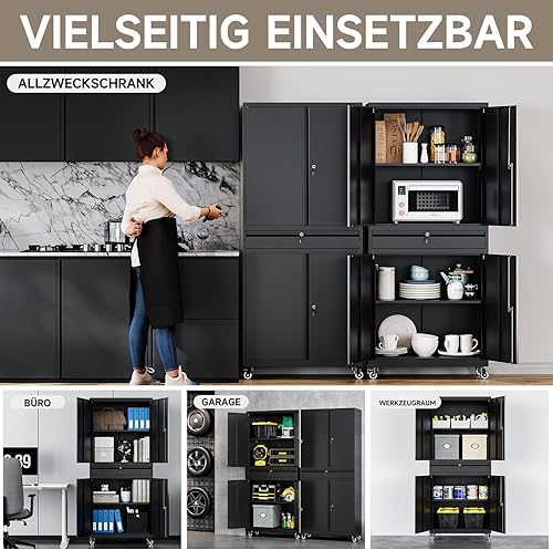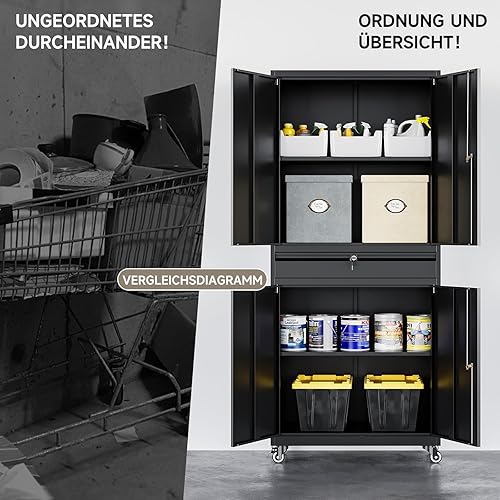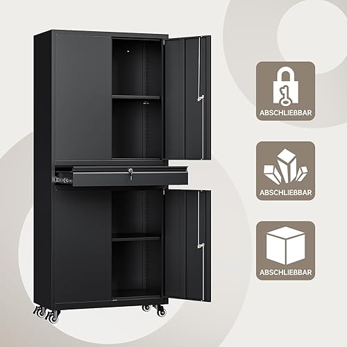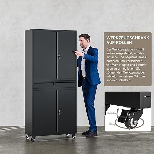 Armadio per attrezzi in metallo, 180 x 40 x 80 cm, richiudibile, multifunzione, in acciaio, con divisori regolabili, armadietto degli attrezzi con cassetti (su ruote)