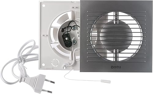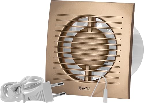 Steinberg14 D'oro Ø 100mm Ventola di Scarico, Ventilatore, Aspiratore Aria e Umidità per la Ventilazione Bagno, WC e Cucina con Interruttore a Tirante e Cavo Spina