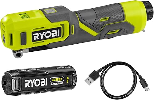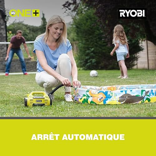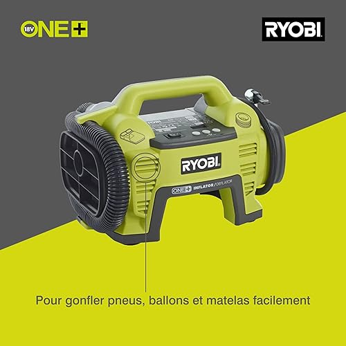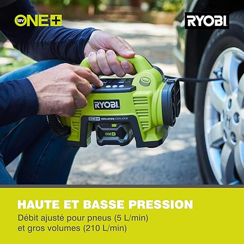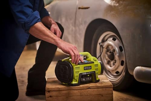 Ryobi RI4-120G, Compressore a Batteria Ricaricabile con USB-C, per Gonfiaggio Veloce di Pneumatici Bici e Palloni Sportivi fino a 100 PSI, Display LED Retroilluminato, 1 Batteria da 2,0Ah Inclusa