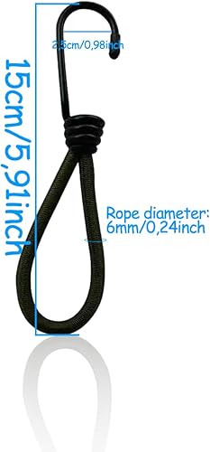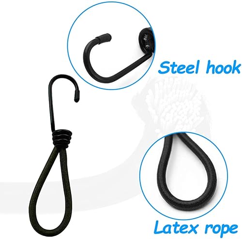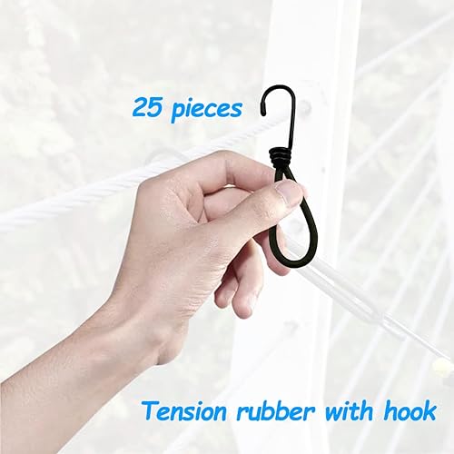 Elastico con Gancio,25 Pezzi Ganci Elastici per Teloni,Gancio Corda Elastico Ganci per Tende da Campeggio,Anello di Tensione di Gomma con Gancio a Spirale Metallico Nero