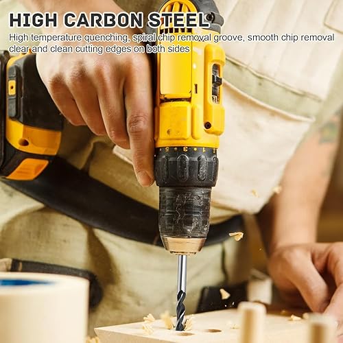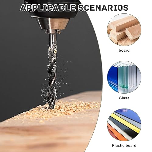 7 Pezzi Set Punte Trapano, Punta Legno Lunga Ø 4/5/6/7/8/10/12 mm, Set Punte Trapano Professionali, Punte Trapano Legno Elicoidali, per Legni Teneri, Legni Duri, Compensato (Argento)