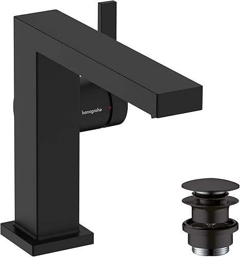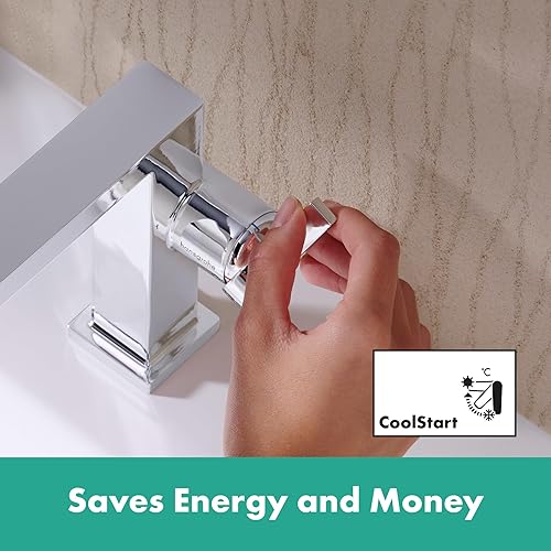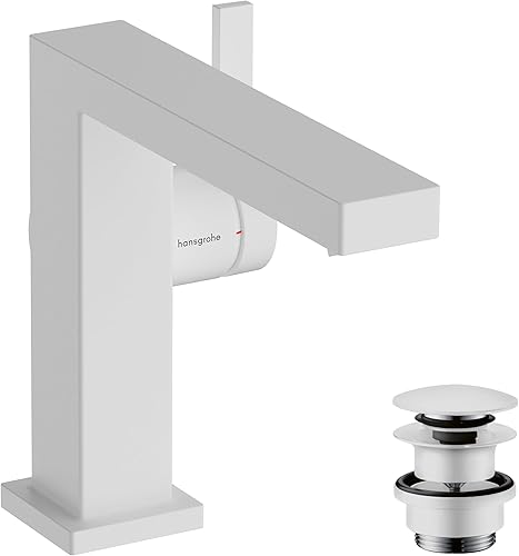 hansgrohe Tecturis E - Rubinetto per lavabo con push-open, risparmio energetico (CoolStart), Miscelatore lavabo risparmio idrico (EcoSmart) con altezza bocca 133 mm, bianco opaco, 73020700
