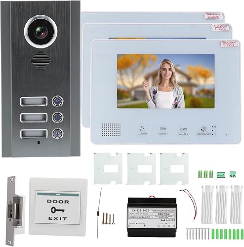 Kit videocitofono, videocitofono multifunzione con luminosità regolabile resistente alle intemperie Smart per casa per villa per ufficio(3 famiglie (SY828NMJAENO3))
