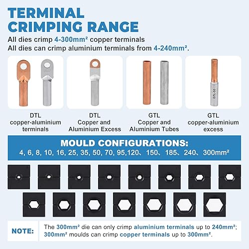 MXBAOHENG 120KN Pinze a crimpare idrauliche elettriche 4-300 mm² Elettrici Rame Alluminio Terminale Pinza A Crimpare Pinza Per Cavi Crimpatrice per Cavi Idraulici con 15 matrici