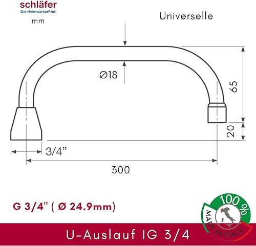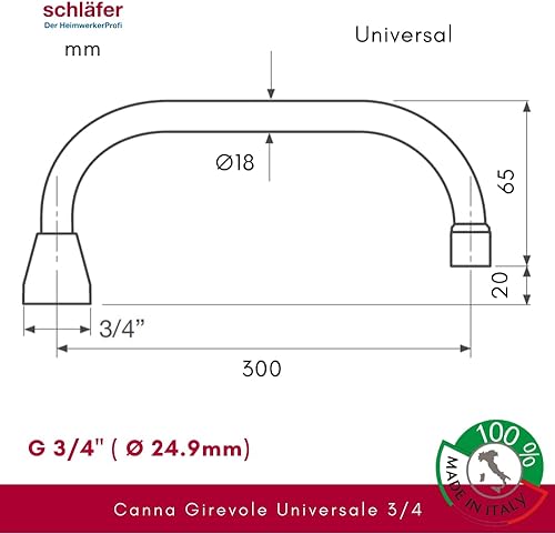 400114 Schläfer | Canna di Ricambio Universale Rubinetto Cucina, Girevole a U, per Gruppo Lavello a Muro cm30, Ghiera 3/4', Compatibile con Aeratore NEOPERL Anticalcare, Risparmio Acqua M22 (incluso)