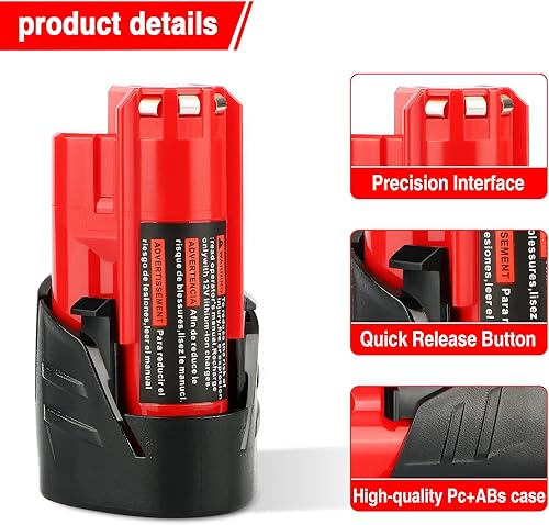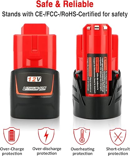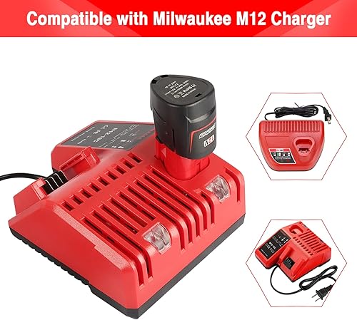 2X Waitley 12V 3.0Ah Batteria per Milwaukee M12 48-11-2410 48-11-2420 48-11-2411 48-11-2401 48-11-2402 M12 12V tensile elettrico senza fili…