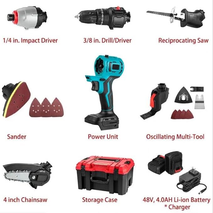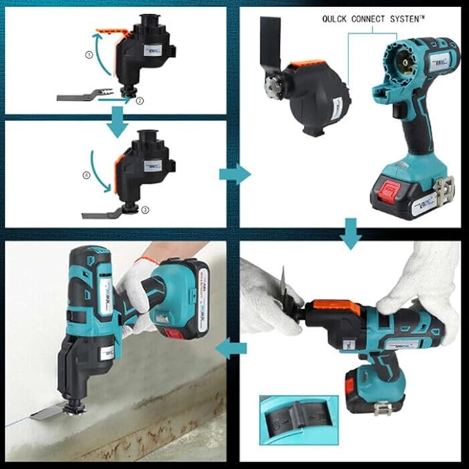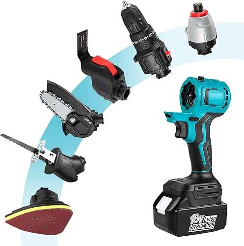 Strumento Multifunzione 6 in 1, Utensile Multifunzione Rotante con Accessori, Trapano Seghetto Sega Levigtrice Avvitatore, 750W, 1450-10000 RPM, 2 Batterie, Fai da Te Lavoretti Casa