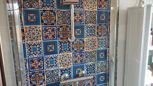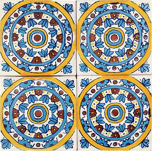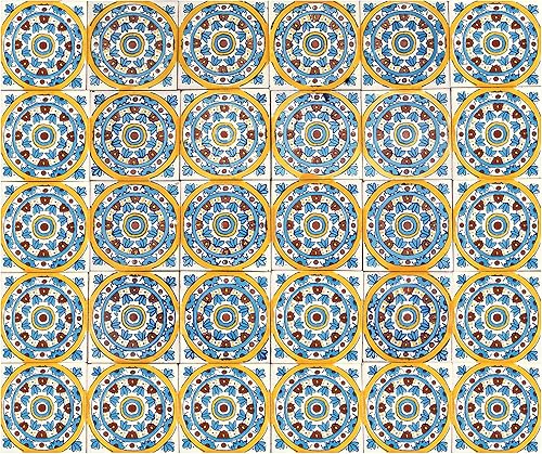 Cerames Piastrelle Mosaico Messicane Rueda – 30 ceramiche mattonelle messicane decorative per bagno, doccia, scale, parete posteriore della cucina | Tessere mosaico ceramica 10,5x10,5 cm