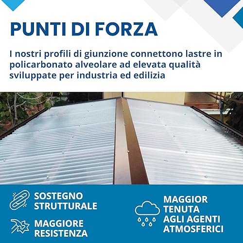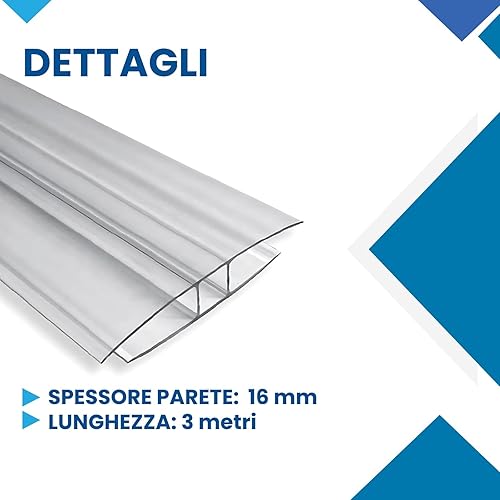 Profilo di Giunzione Policarbonato Trasparente ad H, Spessore 16 mm, Lunghezza 3 metri, per Pannelli Policarbonato, Exolon®, Made in Italy