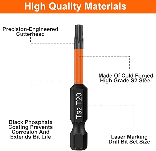 Set di Punte Torx Per Cacciavite, 10 Inserti Per Cacciavite Torx Lunghi 50 Mm Con Albero Esagonale da 1/4” e Memoria Di Base, T10/T15/T20/T25/T30/T40 Set di Inserzioni Elementari