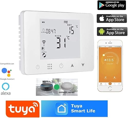 Cronotermostato digitale wi-fi da parete o per cassetta 503 alexa google ios android crono termostato programmabile per caldaia a gas 220v Bianco