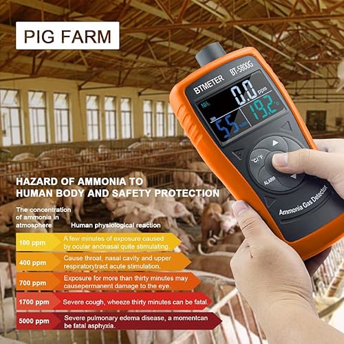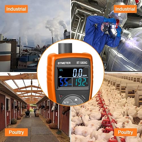 BTMETER BT-5800G - Sensore rilevatore di gas ammoniaca, prova per 0 ~ 100 PPM Nh3 Monitor Gauge con tester di umidità di temperatura