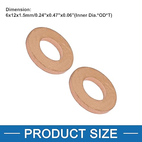A ABSOPRO Rame Rondella 6mm x 12mm x 1.5mm Piatto Sigillante Guarnizione anellos(Set di 20)