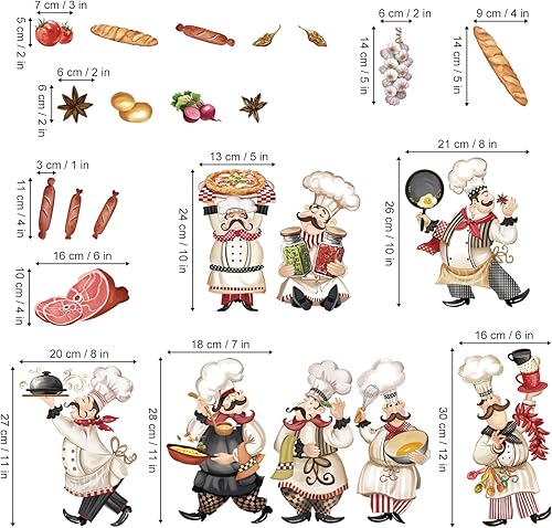 wondever Adesivi Murali Cucina Chef Sticker da Muro Cibo Spezie Adesivi da Parete per Cucina Sala da Pranzo Frigo Armadio
