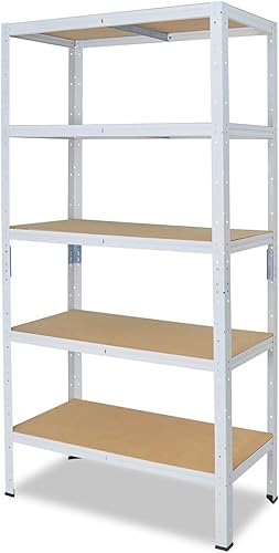 180x60x23cm HOME Scaffale metallo per carichi pesanti bianco con 5 ripiani con 175kg capacità di carico/Scaffali in metallo per garage come scaffali per ripostiglio o officina