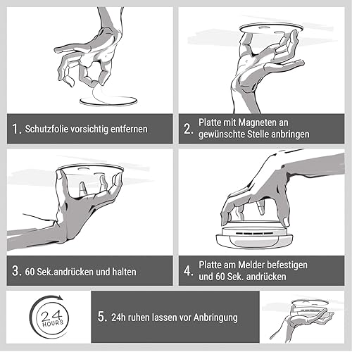 Supporto Magnetico per Rilevatore di Fumo con Ø 50 mm – Set da 5 – Magneti Autoadesivi per Tutti Rilevatori di Fumo - 3M Calamite Adesive con Attacco Facile Senza Perforazione o Viti