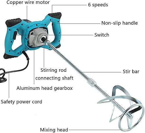 Miscelatore per Cemento colla e Malta 2000W Elettrico trapano Mescolatore Agitatore per Malta con 6 velocità Regolabili attacco M14 impugnatura ergonomica e sistema antivibrante
