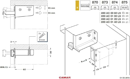 Reggipensile CAMAR. Kit Supporto Pensile (coppia DX e SX). Ganci Mobili Sospesi. (CAMAR 800, MARRONE)