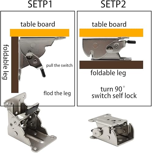 GYSRXS 4 Pezzi Cerniere Gambe Tavolo Pieghevole 90°Raccordi a Cerniera Autobloccanti con Viti Cerniere Pieghevoli per Tavolo,Letto,Divano Letto,2.5mm Spessore(Giallo)
