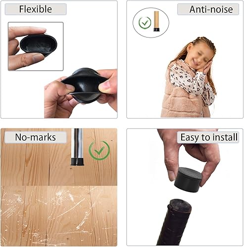 Flyshop - Tappi protettivi per gambe delle sedie, mobili e tavoli, in gomma antiscivolo, 2 pollici, 50 mm, rotondi, colore nero, 8 pezzi