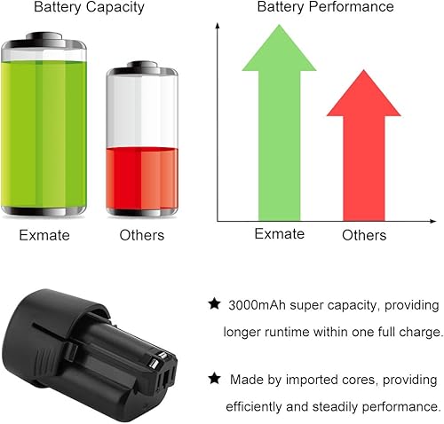 Exmate 10.8V 3000mAh batteria di ricambio agli ioni di litio per Bosch 2607336013 2607336014 BAT411 BAT411A BAT412A